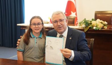 Ekrem İmamoğlu, 2024 LGS imtihanında 500 tam puan alarak birinci olan Ecrin Kaptan, Mehmet Arif Yıldız ve Ebrar Nalbant’ı ağırladı